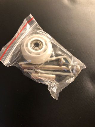 Scarpe da ginnastica bianche (numero 37) con dettagli rossi e due rotelle integrate nella suola. - Tomaia in ecopelle bianca. - Dettagli rossi sul tallone e sul bordo. - Due rotelle trasparenti per ogni scarpa. - Chiusura con lacci bianchi. Con un clic le scarpe diventeranno pattini!