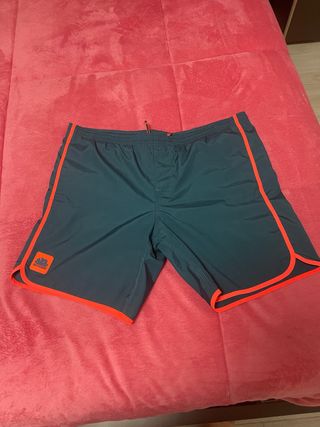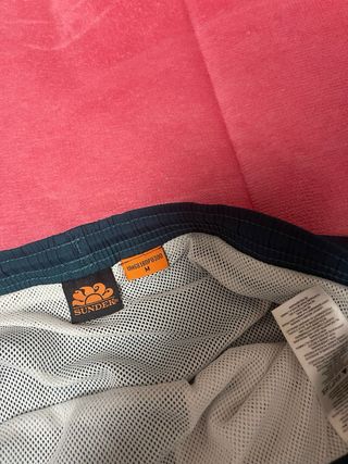 Costume da bagno da uomo Sundek. - Colore blu petrolio con profili arancioni. - Logo Sundek applicato sulla gamba sinistra. - Vita elasticizzata con laccetto regolabile.