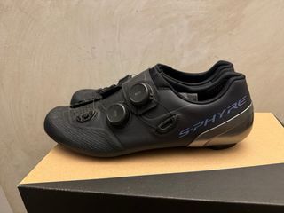 Scarpe da ciclismo Shimano S-Phyre RC902 per strada. Taglia 44 - Design nero elegante. - Chiusura BOA. - Logo S-Phyre sul tallone.