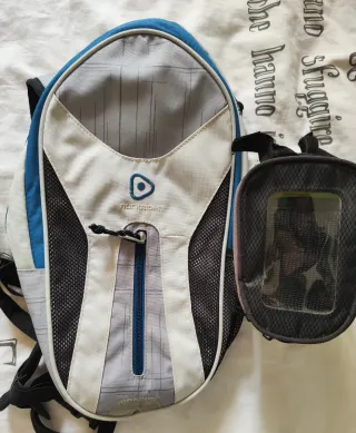 Zaino da ciclismo Rockrider di Decathlon, ideale per le tue uscite in MTB. Include una pratica borsa da telaio. - Zaino con design sportivo. - Borsa da telaio inclusa.