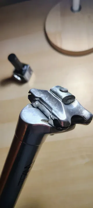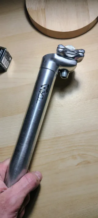 Reggisella TEAM by SELCOF in argento. Reggisella in buone condizioni, presenta dei graffi lungo il tubo ma nulla di grave. Ho messo le lunghezze nelle foto. Assieme vi metto l'anello per bloccarlo nel telaio. Guardate il mio account, ci sono selle e altri oggetti compatibili! Se volete più di un articolo scrivetemi che ci mettiamo d'accordo!