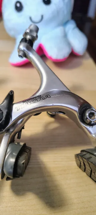 Vendo freni Shimano Tiagra BR-4400 per bici da strada. Coppia freni anteriore e posteriore Usati, funzionanti Normali segni d’uso, pattini in buono stato. Guardate il mio account, ci sono selle e altri oggetti compatibili! Se volete più di un articolo scrivetemi che ci mettiamo d'accordo!