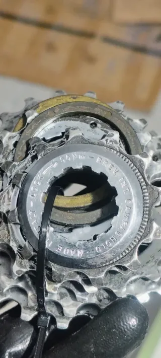 Vendo cassetta Brev. Int. Campagnolo 9 velocità vintage. • Prime 8 corone originali Campagnolo • Corona da 26 aggiunta, non originale (probabile Shimano) con adattatore Marchisio Aviotek 8/9v •Usata ma scorre bene, dopo pulizia restano alcune incrostazioni più resistenti (si puliranno facilmente con esperienza) Ideale per bici corsa con gruppo 9v Guardate il mio account, ci sono selle e altri oggetti compatibili! Se volete più di un articolo scrivetemi che ci mettiamo d'accordo!.