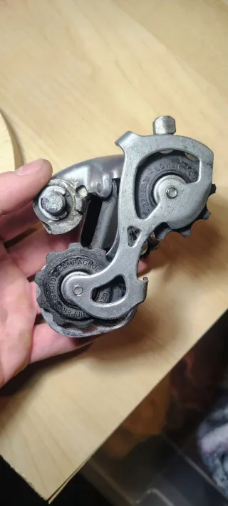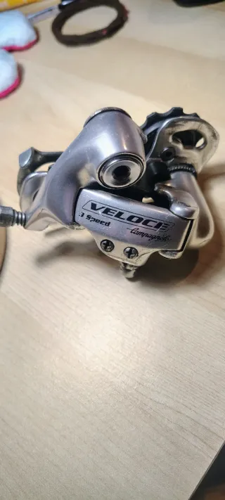 Deragliatore posteriore Campagnolo Veloce. Come da foto in buono stato. Pulegge in ottimo stato. Qualche graffio laterale e del grasso incrostato su alcuni punti. Ma il meccanismo funziona perfettamente, come ogni pezzo Campagnolo. Ottimo per bici da corsa Vintage a 9v. Guardate il mio account, ci sono selle e altri oggetti compatibili! Se volete più di un articolo scrivetemi che ci mettiamo d'accordo!