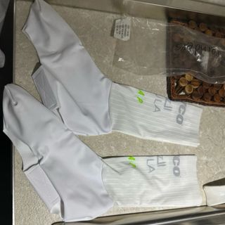 Calze da ciclismo Jayco Alula, modello M 2024. - Colore bianco. - Logo Jayco blu sul gambale. - Tessuto tecnico traspirante.