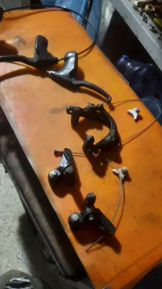 Coppia di comandi cambio per bicicletta fine anni 80 per mtb a frizione per cambio corone e oer cambio pignoni per informazioni ulteriori foto contattatemi pure posso spedire - Modello con manopola. - Cavi e guaine inclusi.