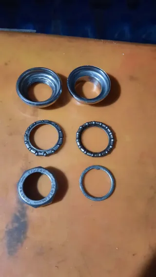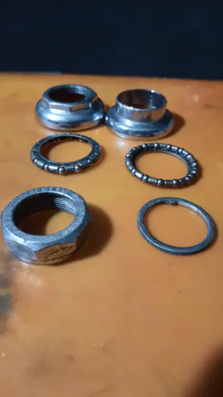 Componenti per serie sterzo da 1 pollice in acciaio cromato ottime cromature anni 70 - Anelli di cuscinetti - Coni - Dado - Rondella