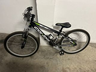 Bicicletta per bambini in colore nero con dettagli verdi e bianchi. Ideale per bambini tra gli 8 e i 12 anni. Componenti: Telaio, Ruote, Sella, Manubrio, Pedali.