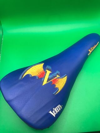 Sella da ciclismo per bici bicicletta vintage epoca eroica storica Vuelta Excalibur di colore blu. - Design con logo stampato e ricamato - Logo Vuelta sul retro. - Alcuni segni sul retro visibili in foto - Leggermente scollata nella parte inferiore - Spugna che ha preso un forma compressa - Fondo di magazzino - Nuova ottima per il restauro di bici bike biciclette vintage eroica come Bianchi Campagnolo Shimano Pinarello Colnago e Pinarello