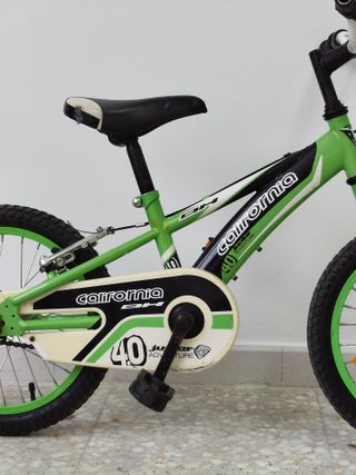 Bicicletta per bambini modello California BH 40 Junior adventure. Buono stato: la copertura della catena ha una parte rotta. Verde e bianco, ruote da 16 pollici. Tutto funziona correttamente. Ritiro gratuito in negozio o consegna gratuita a domicilio a partire da 50€ di acquisto a Xinzo de Limia e da 100€ a Ourense. Per altre zone della Galizia consultare il prezzo via chat. Seguici su Wallapop per vedere le nostre offerte e novità.