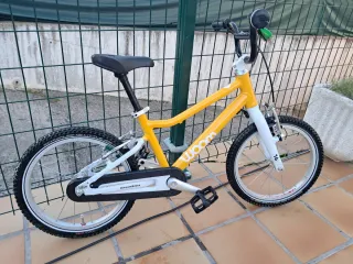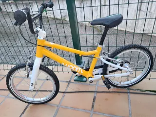 Bicicletta per bambini ultraleggera, ideale per bambini dai 3 ai 6 anni. - Ruote da 16 pollici. - Telaio in alluminio - LA PIÙ LEGGERA DEL MERCATO, lo notano molto quando imparano. - CINGHIA, non catena per non sporcarsi e va benissimo. - Leva dei freni regolabili per adattarsi alle manine. In ottime condizioni, con le coperture originali e i freni praticamente nuovi. Arrivata a casa nuova qualche mese fa, usata solo per un breve periodo, con segni di pedali e normale usura. Pronta per molte avventure!