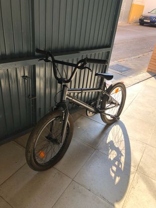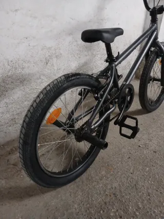 Bicicleta BMX grigia, ideale per trucchi e passeggiate. - Telaio resistente. - Ruote da 20 pollici. - Manubrio alto per un maggiore controllo. Telaio resistente, ruote larghe e pochi componenti: resiste agli urti, richiede poca manutenzione ed è facile da usare. Regalo perfetto se vuoi una bici duratura, sicura e divertente, pensata per la strada e i giochi, non per lunghi percorsi. Contattami senza impegno