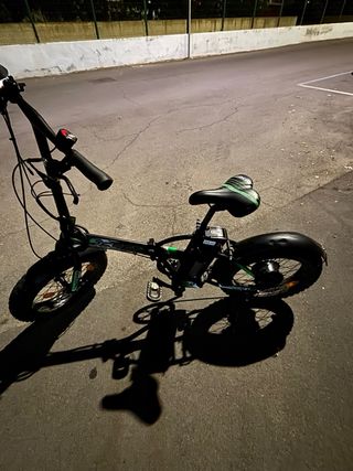 Bici elettrica dal design moderno e funzionale, perfetta per spostamenti agili. - Telaio pieghevole. - Ruote larghe per maggiore stabilità. - Manubrio regolabile.