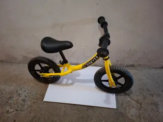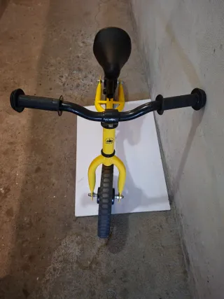 Bici senza pedali per imparare a stare in equilibrio. - Telaio giallo. - Manubrio nero con impugnature. - Sella nera. - Ruota anteriore con battistrada.