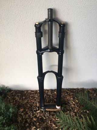 per ruota da 26, ottime condizioni, no perdite olio. perno passante in ottime condizioni, misura 20x110. canotto molto lungo tagliato a 21 cm che permette il montaggio di attacco manubrio classico oltre attacco piastra. invio in spagna solo con seur, italia solo con brt. (scelta obbligata date le dimensioni)