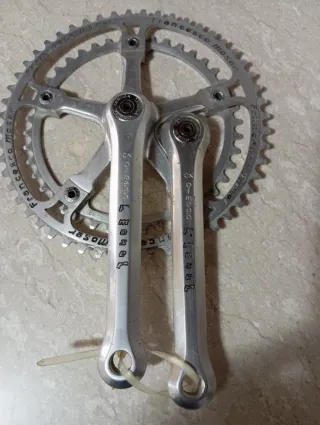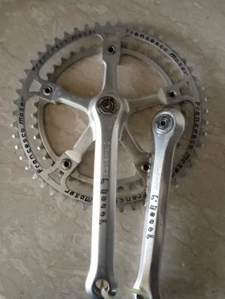 Guarnitura per bicicletta marca Francesco Moser. Corone 52-42 in ottimo stato. - Materiale in alluminio. - Design sportivo.