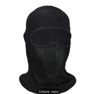 Passamontagna nero per ciclismo, adatto ad adulti e unisex. Protegge dal freddo e dal vento. - Materiale in tessuto traspirante. - Apertura per gli occhi. - Copertura per naso e bocca in rete.