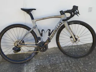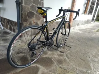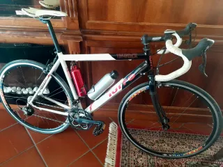 La bici è in ottime condizioni.Telaio e forcella in carbonio. Ruote in alluminio Categoria Endurance,ideale e comoda per le lunghe distanze e per le salite. Qualche normale segno estetico superficiale dovuto all'uso,tenuta in modo maniacale per quanto riguarda pulizia e manutenzione. Meccanicamente è perfetta,pronta all'uso e non necessita di manutenzione - TRASMISSIONE: deragliatore sostituito circa 800km fa,catena in buono stato non necessita di sostituzione - RUOTE:copertoni Vittoria e camere d'aria nuovi - FRENI:pastiglie (ant/post) e il disco anteriore nuovi - MANUBRIO:nuove manopole in gomma e nastro Peso: 8,8kg Taglia: 56cm