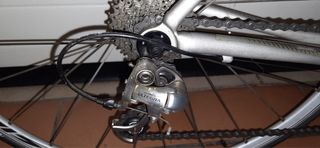 Bicicletta da corsa Dynatek Dyna Plus Carbon Plus, completamente smontata, pulita e revisionata a febbraio 2026. Pronta per pedalare, nessun lavoro da eseguire. Specifiche tecniche: telaio misto alu/carbon; forcella: Trigon carbonio; trasmissione: Campagnolo 9 velocità; guarnitura: BCD 110 53-38, mov. centrale Campagnolo Chorus a perno quadro, catena nuova; cassetta: Miche 9v freni: Campagnolo Record dual pivot; ruote: Byte Roubaix SL. Misure: tubo verticale 52 cm c-f, tubo orizzontale 54 cm c-c (55 cm effettivi). Prezzo trattabile.