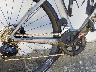 Bicicletta da corsa Pinarello F5. Taglia 51.5 (altezza 165-172 cm). Settembre 2023. Pari al nuovo. Cambio elettronico Rival e freni a disco. Revisionata di recente con sostituzione catena e copertoni. 5.000 km percorsi. In garanzia per altri 3 anni. - Telaio in carbonio. - Ruote Fulcrum.