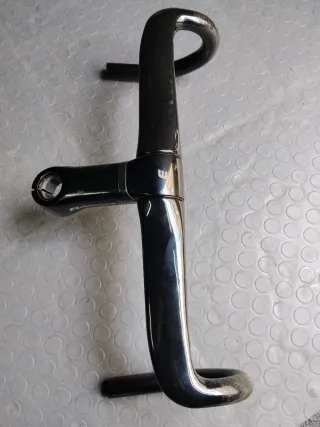 Manubrio da bici da corsa in carbonio marca Time. Manubrio in buone condizioni, usato pochissimo. Presenta una scheggiatura superficiale del trasparente sul lato sinistro. Apparte questo piccolo difetto il manubrio è perfetto e non presenta altri segni di usura