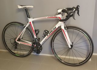 Bicicletta in carbonio Mendiz Infinit F10. Telaio, reggisella e manubrio in carbonio. Completamente assemblato in Ultegra 11v con piastra 52-36 È una taglia S, nella foto ce l'ho per la mia altezza 1,75. È una bici aerodinamica con geometria da corsa ed è molto leggera. Ruote in alluminio Progress. In ottime condizioni, aggiornato con la meccanica e pronto a rotolare senza dover fare nulla. Pedali neri compatibili con Keo (non quelli in foto) Il supporto Garmin non è incluso. Può essere testato senza impegno a Madrid, nella zona di Manoteras con possibilità di consegna nelle Asturie. Aggiornamento: catena, cinturino sul manubrio e coperchio posteriore cambiati.
