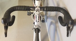 Bicicletta da strada Trek Madone 6.9 in carbonio. Bici da corsa ultraleggera in carbonio, in buone condizioni. Anno 2008. La catena è nuova. Ha segni di normale utilizzo. Coperture usate ma possono ancora percorrere chilometri. Nota: le protezioni in gomma delle leve dei freni devono essere sostituite perché sono un po' appiccicose. Peso 8,7 kg. Misure: vedere nella foto. Taglia: tra 52 e 54. (XavierPs850).