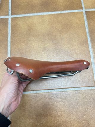 Sella Brooks B15 Swallow in pelle per bici da strada o bici da strada in pelle marrone con binari in titanio. Usato un paio di volte per una protezione per bici che non ho mai finito. Questo modello in titanio è fuori produzione ed è molto difficile da trovare.