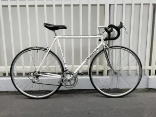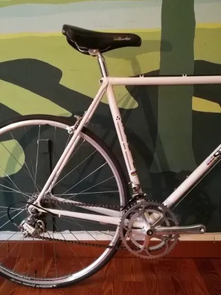 anni 70/80, 28', telaio B. Thevenet con adesivi originali ma complemente rinnovata. manubrio dritto a spadino, freni e leve a tre dita nuove, pedali e movimento nuovi, cerchi e ruote, forcella cromata. accetto permute con pari valore x bici corsa Colnago misura 58.
