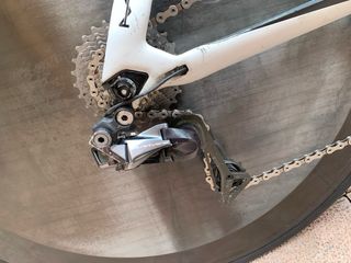 Di aeroligth bici che può essere utilizzata sia per il triathlon che per la cronometro Gruppo Shimano 105 ruote in carbonio sscar profile 50 (la ruota posteriore è praticamente nuova poiché si è rotta e cambiata) Buone condizioni Controllare e sostituire cavi e coperchi