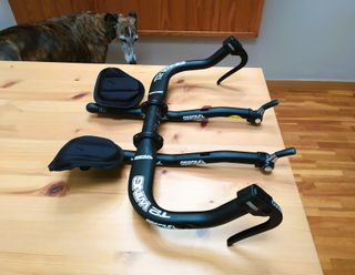 Attacco al manubrio della bicicletta, per cronometro o triathlon. È in buone condizioni. - Design curvo per una posizione aerodinamica. - Materiale resistente e durevole.
