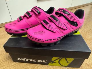 Scarpe da bici da donna, in colore rosa, usate appena una volta, quindi praticamente nuove. Queste scarpe hanno una suola speciale che permette di aderire meglio al pedale della bici. La taglia delle scarpe è la 37. Per ritiro a mano, nel sud o centro di Madrid, a Atocha Cercanías renfe.