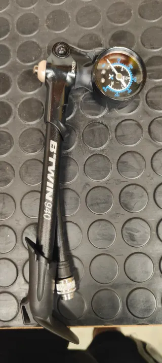 Pompa per sospensioni Btwin 940 con manometro integrato. Pompa x sospensione bici MTB Downhill 300psi - Manometro per il controllo della pressione. - Design compatto e leggero. - Costruzione robusta.