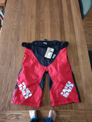 Pantaloncini da ciclismo per la specialità Downhill. Ixs kids shorts race - Colore rosso e nero. - Logo del marchio Ixs in bianco. Senza imbottitura, nuovo, mai usato. Prezzo nuovo 50€.