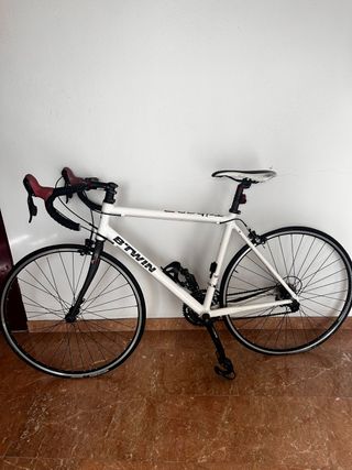 Bicicleta da strada BTWIN TRIDAN 500, ideale per allenamenti e percorsi. - Telaio in alluminio. - Ruote da 700c. - Manubrio da strada. - Portaborraccia incluso. - Contachilometri incluso.