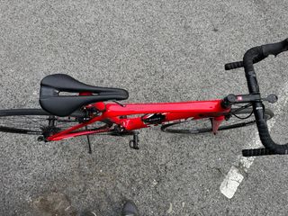 Bicicletta da corsa Trek in carbonio, ideale per gli amanti del ciclismo. - Telaio in carbonio leggero e resistente. - Colore rosso vivace. - Manubrio da corsa. -Tenuta in box con cura maniacale - A corredo supporto bici