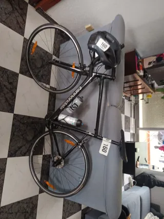 Bicicletta da strada Cannondale in colore nero. Si trova in perfette condizioni. - Acquistata per fare un triathlon 9 mesi fa, unico utilizzo. - Include casco e portaborraccia.