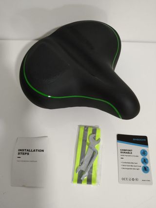 Nuovo con imballaggio originale e tutti gli accessori. SMBZOMI, Sedile per bicicletta super comodo e morbido, sedile per bicicletta ampio di grandi dimensioni, per uomo e donna, imbottitura in schiuma viscoelastica ad alta densità, impermeabile, assorbimento degli impatti. Adatto UNIVERSALMENTE a tutti i tipi di biciclette, adattabile a qualsiasi stelo, bici da strada, mountain bike, MTB, statica, spinning, ecc... MONTAGGIO SEMPLICE. Include: Adattatore, Cintura riflettente, strumenti e manuale di montaggio!!! - Design ergonomico. - Superficie imbottita. - Dettagli in verde.