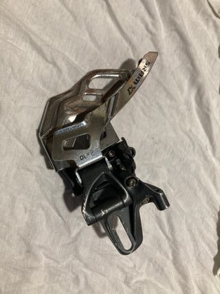 Deragliatore anteriore Shimano Dura Ace in metallo. - Design in metallo lucido. - Componente per bicicletta.