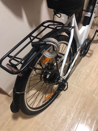 Bicicletta elettrica in buone condizioni, ideale per spostamenti. - Percorre 35-40 km in discesa. - Sella comoda. - Non è pieghevole. - Il caricatore si è rotto, cercherò quello della bici e verrà fornito con un caricatore.