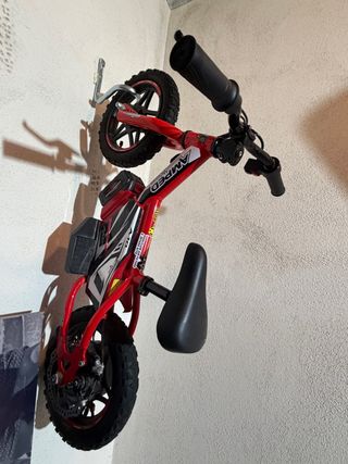 Bicicletta elettrica per bambini del marchio AMPED, modello 10. Ideale per i più piccoli. Colore rosso. Ruote da 10 pollici. Sella nera. Manubrio nero. Prezzo 380€, poco usato.