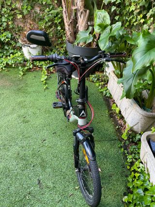 Bicicletta elettrica pieghevole, ideale per spostamenti urbani. Design moderno in nero con dettagli rossi. Ruote da 16 pollici. Sella regolabile in altezza. Fanalino posteriore e parafanghi anteriori e posteriori. Un solo proprietario. Fattura di acquisto inclusa.
