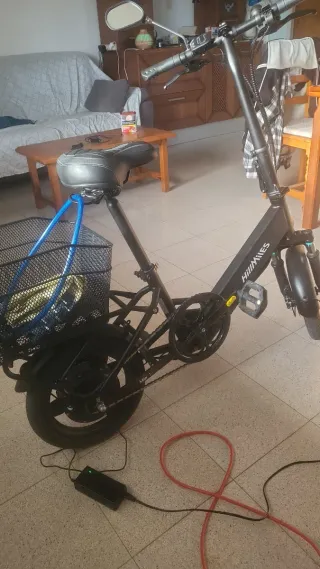 Bicicletta elettrica pieghevole del marchio HillMiles. Ideale per spostamenti urbani. - Colore nero. - Cestino anteriore. - Include caricabatterie.