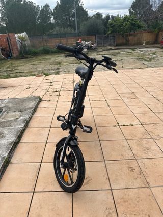 Bicicletta elettrica pieghevole del marchio EVOURBAN. Progettata per facilitare il trasporto e lo stoccaggio. Richiede una regolazione dei freni e non ha la chiave della batteria per rimuoverla, ma può essere chiusa con essa in posizione. Funziona perfettamente, il resto è dovuto all'usura.