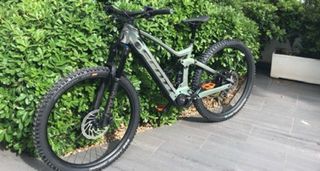 Bicicletta elettrica da enduro da 29 pollici. Motore Shimano E8000 con errore E010, batteria al 100% della capacità. Telaio in alluminio. Sospensione anteriore Fox Kashima 29 pollici con escursione di 170 mm. Ruote Maxxis. Manubrio Rental. Ruote quasi nuove. Ammortizzatore posteriore Fox Float X2. Freni a doppio pistone.