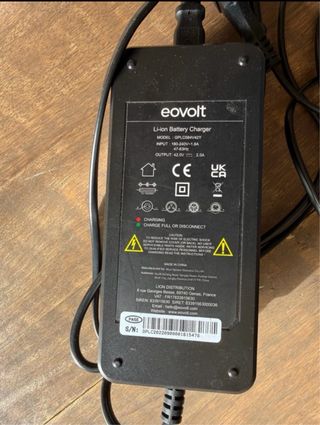 Caricabatterie originale Eovolt per biciclette elettriche. - Colore nero. - Cavo di alimentazione incluso. - Connettore angolare per la bici. - va bene per modelli morning e afternoon