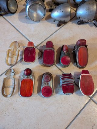 Vendo 8 fanalini posteriori per bicicletta d'epoca da passeggio. Sono in buone condizioni, anche se presentano alcuni segni del tempo. Ideali per il restauro di bici vintage. - Pezzi originali - Perfetti per collezionisti - Alcuni presentano segni di usura. Made in Italy. Vendo anche singolarmente a 7€ l'uno Superlux, Aprilia, Mondial, Dansi, Bianchi, Colnago, Pinarello, Cinelli, Olmo, Carrera, Alan-Moser-Shimano-Atala-Giant-Itm-Legnano-Record-Chorus-Veloce-Victory-DuraAce-105-Gipiemme-Ambrosio-3tt-Mavic-Antico-Storico-Allumini o-Veloce-Triomphe-Athena-De Rosa-Master-Concor-Almarc-Rauler-Selle Italia-Gios-Wilier-Viner-Acciaio-Velo