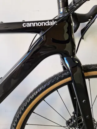 Bicicletta gravel Cannondale in colore nero. Telaio in carbonio. Ruote da 700c. Pneumatici per gravel.