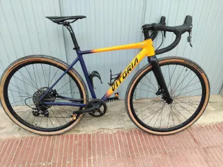Bicicletta gravel Vitoria NYX Taglia S - Telaio in alluminio. - Forcella in carbonio. - Freni idraulici Sram Apex. - Pneumatici 700x38 tubeless per gravel. - Gruppo Sram Apex monoplato 1 x 11 (pignone 42/11, corona 42). - Cuscinetti e cuscinetti del pedale sostituiti.