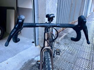 Purtroppo, le nostre aspettative non coincidono sempre con quelle dei nostri partner, quindi, con mio grande dispiacere, la bici è nuova. Modello Massi Gravel Across con telaio in alluminio e taglia S. Colore: bronzo metallizzato. Gruppo: Shimano GRX completo. Ruote Massi con nucleo Shimano. Freni a disco. Come potete vedere nelle foto, stato delle ruote, adesivi sui dischi, ecc., la bici è nuova, abbiamo fatto un paio di percorsi verdi. La bici è stata acquistata all'inizio del 2025.